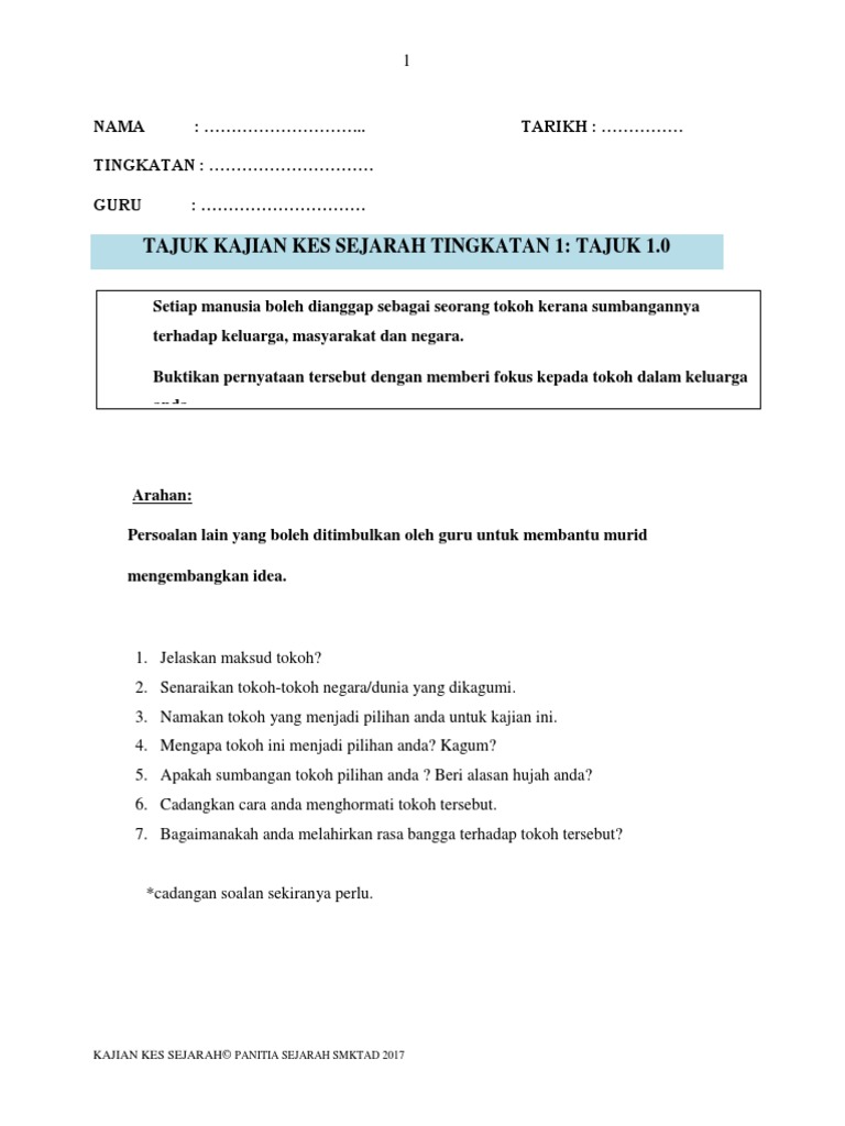 Contoh Kajian Kes Kssm Sejarah T1 Pdf